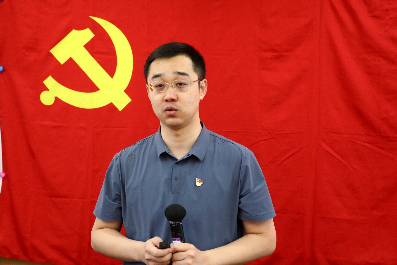 金博18党支部书记许程以“在中国式现代化进程中贡献青春力量”为主题进行汇报。他认为中国式现代化理论是党的二十大报告的一个重点,也是一个亮点,是学习贯彻党的二十大精神必须领会和全面把握的一个重要内容。他从世界现代化发展的共性出发,剖析出中国式现代化呈现“五个中国特色”、坚持“五个重大原则”和“九个方面的本质要求”。他指出,中国式现代化的中国特色也在解决全人类共同的难题,其科学内涵既是理论概括,也是实践要求,为全面建成社会主义现代化强国,实现中华民族伟大复兴指明了一条康庄大道。他强调为民族复兴贡献青春力量要求青年坚持党的领导,坚定理想信念;坚持科学态度,大兴调研之风;勇于创新,爱岗敬业,不负韶华。