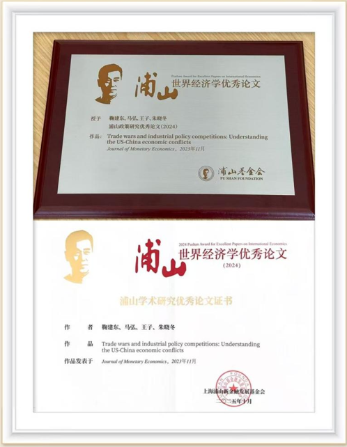 教授朱晓冬合著发表的论文《贸易战与产业政策竞争:理解中美经贸冲突》(Trade Wars and Industrial Policy Competition: Understanding the US-China Economic Conflicts)荣获“浦山政策研究优秀论文(2024)”,该论文于2024年在著名国际期刊《货币经济学期刊》(Journal of Monetary Economics)发表。