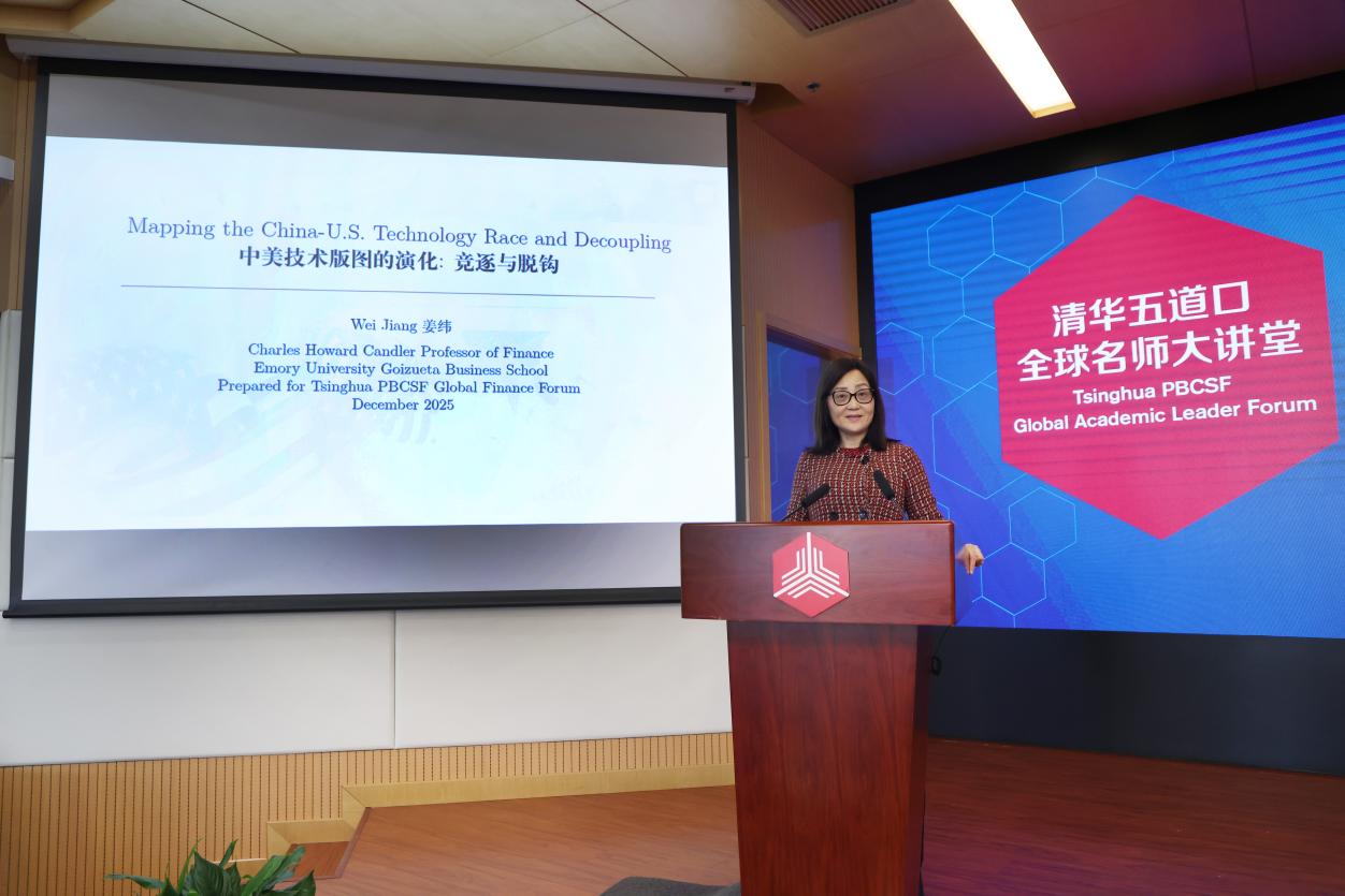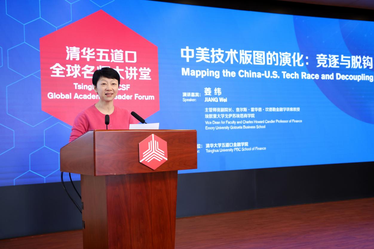 主管师资副院长、查尔斯·霍华德·坎德勒金融学讲席教授姜纬做客8bo比分全球名师大讲堂,发表题为“中美技术版图的演化:竞逐与脱钩(Mapping the China-U.S. Technology Race and Decoupling)”的演讲。