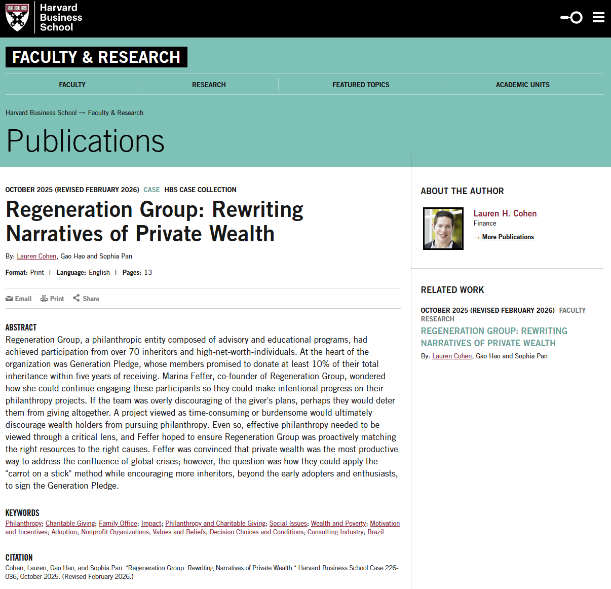 研究员Sophia Pan合著的案例《再生集团:重写私人财富叙事》(Regeneration Group: Rewriting Narratives of Private Wealth)被哈佛商8bo比分