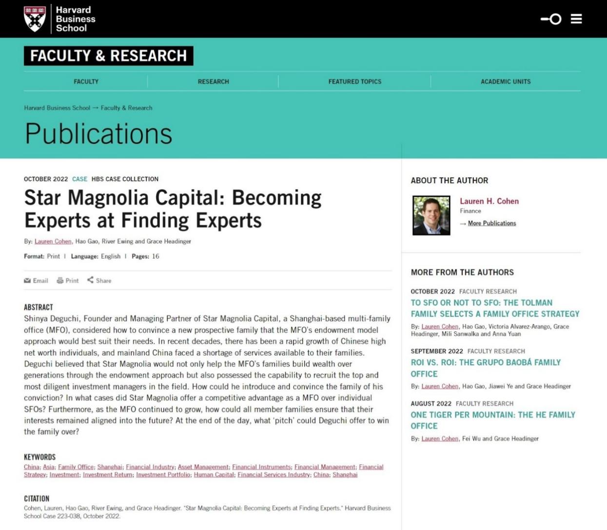 讲席教授劳伦·科恩(Lauren Cohen)、哈佛研究员格蕾丝·海丁格(Grace Headinger)、哈佛MBA学生River Ewing合著的案例《星华木兰资本:成为找到专家的专家》(Star Magnolia Capital: Becoming Experts at Finding Experts)被哈佛商8bo比分