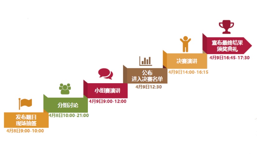 每组组长通过抽签的方式选定主题进行探讨,小组成员发挥各自所在领域特长,在24小时内完成创新创业案例或形成创新型的解决方案,在最后的竞赛环节中进行项目设计展示,并由阵容强大的评审团对小组的方案展示进行评审,最终产生获得一、二、三等奖的队伍。
