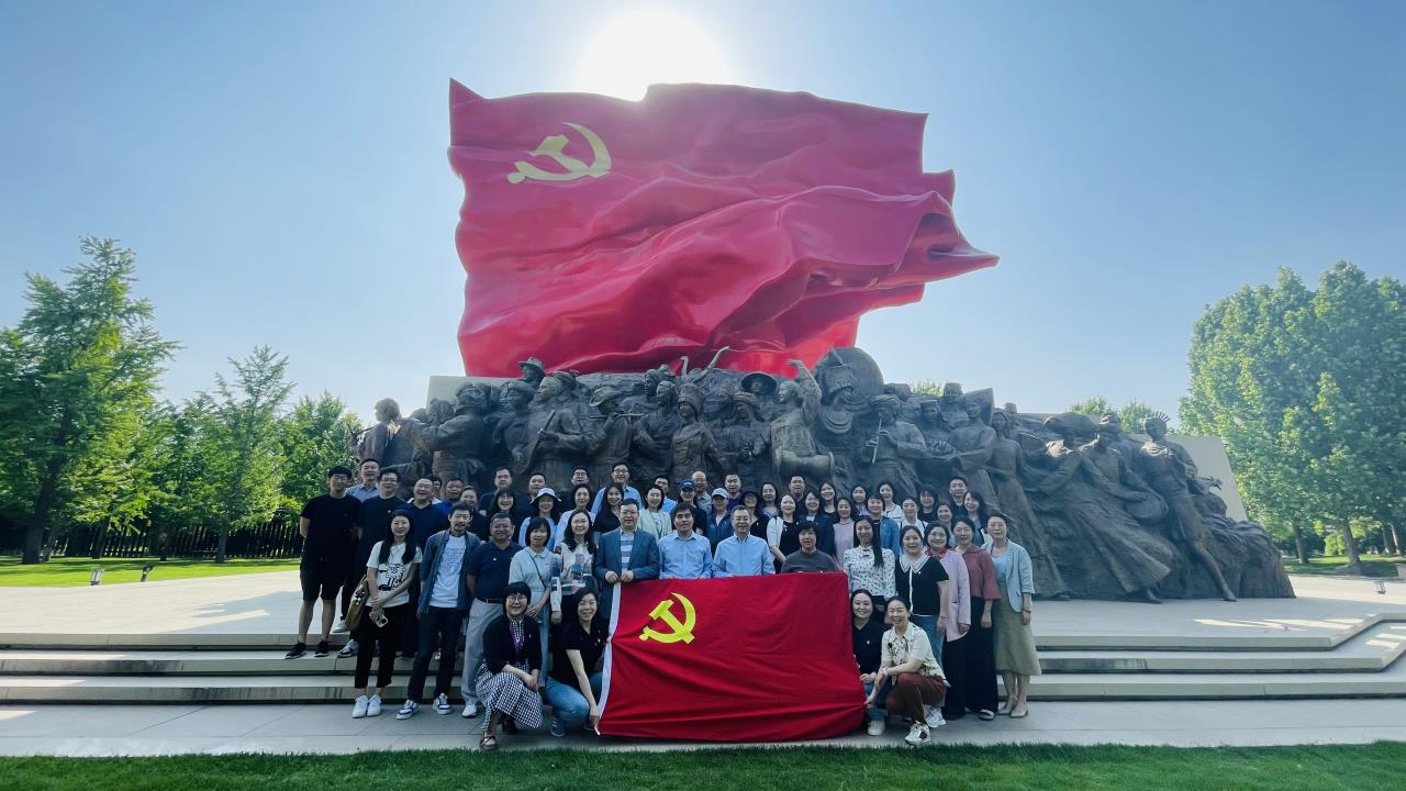 校史馆参观结束后,大家漫步在中央党校静谧的校园、登上一大红船,回顾一大召开的历史、体会百余年前的现实场景和革命斗争的决心,最后在“旗帜”雕塑前合影。