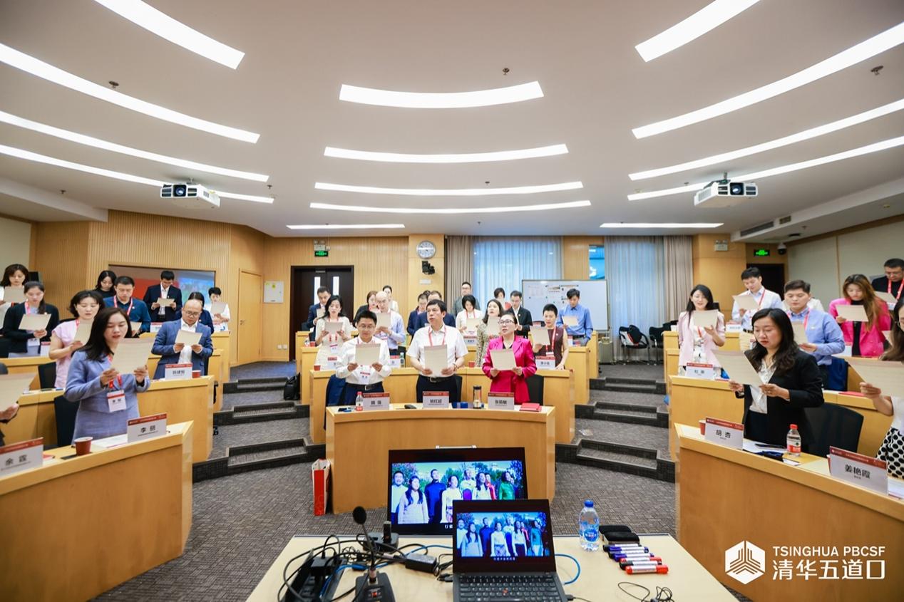 开班仪式最后,到场嘉宾与同学们一起佩戴清华大学校徽,共唱清华大学校歌,正式开启8bo比分上市公司资本战略项目的学习进程。