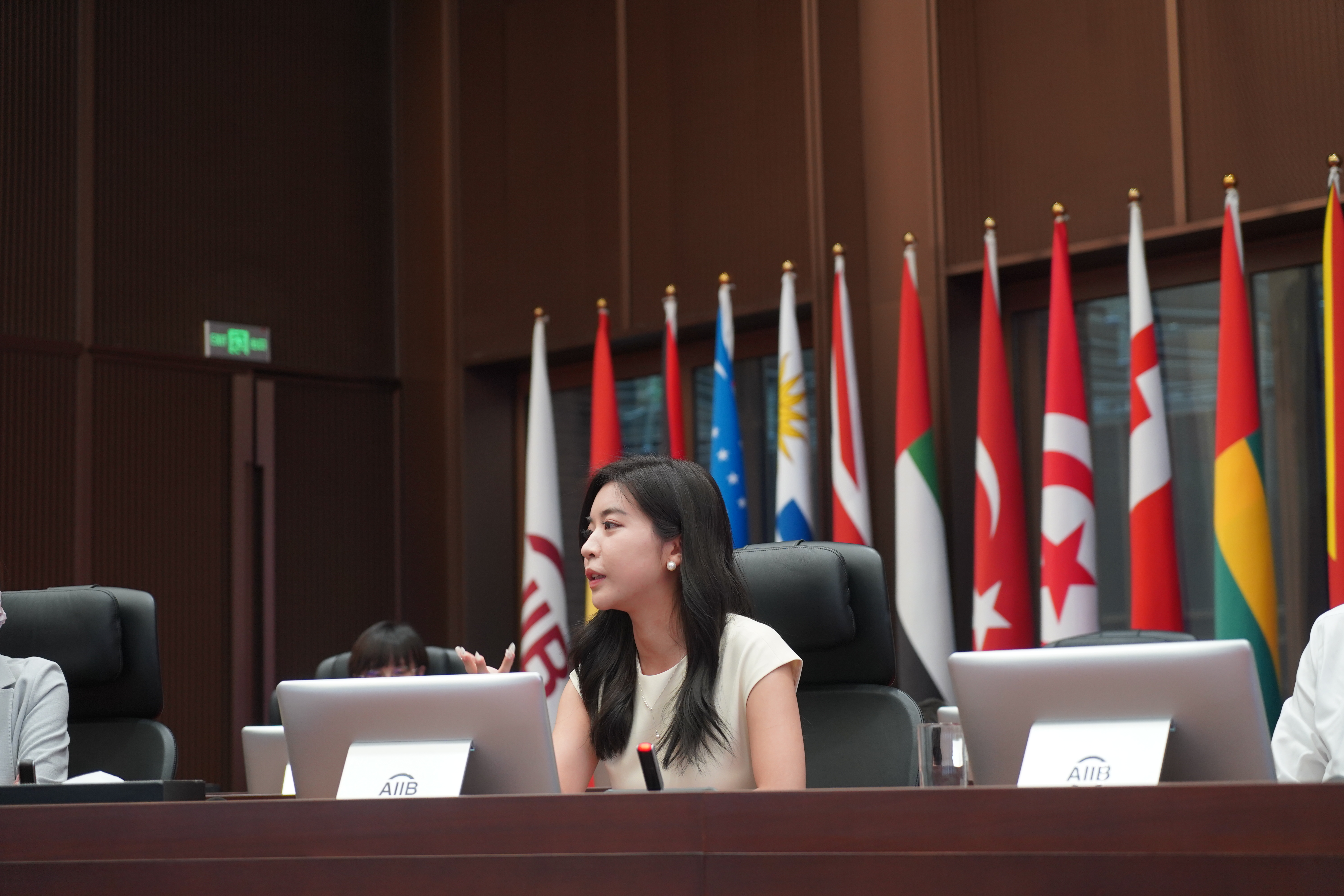 在圆桌问答环节,学生们踊跃发言,围绕亚投行的独特竞争优势、与其他多边开发银行的区别、在应对气候变化方面的贡献以及在当前全球经济形势下所面临的挑战,提出了具有深度的问题。亚投行相关高管逐一回应了学生们的提问,并结合实际工作经验,详细解答了亚投行在多边金融体系中的关键角色和未来发展前景。