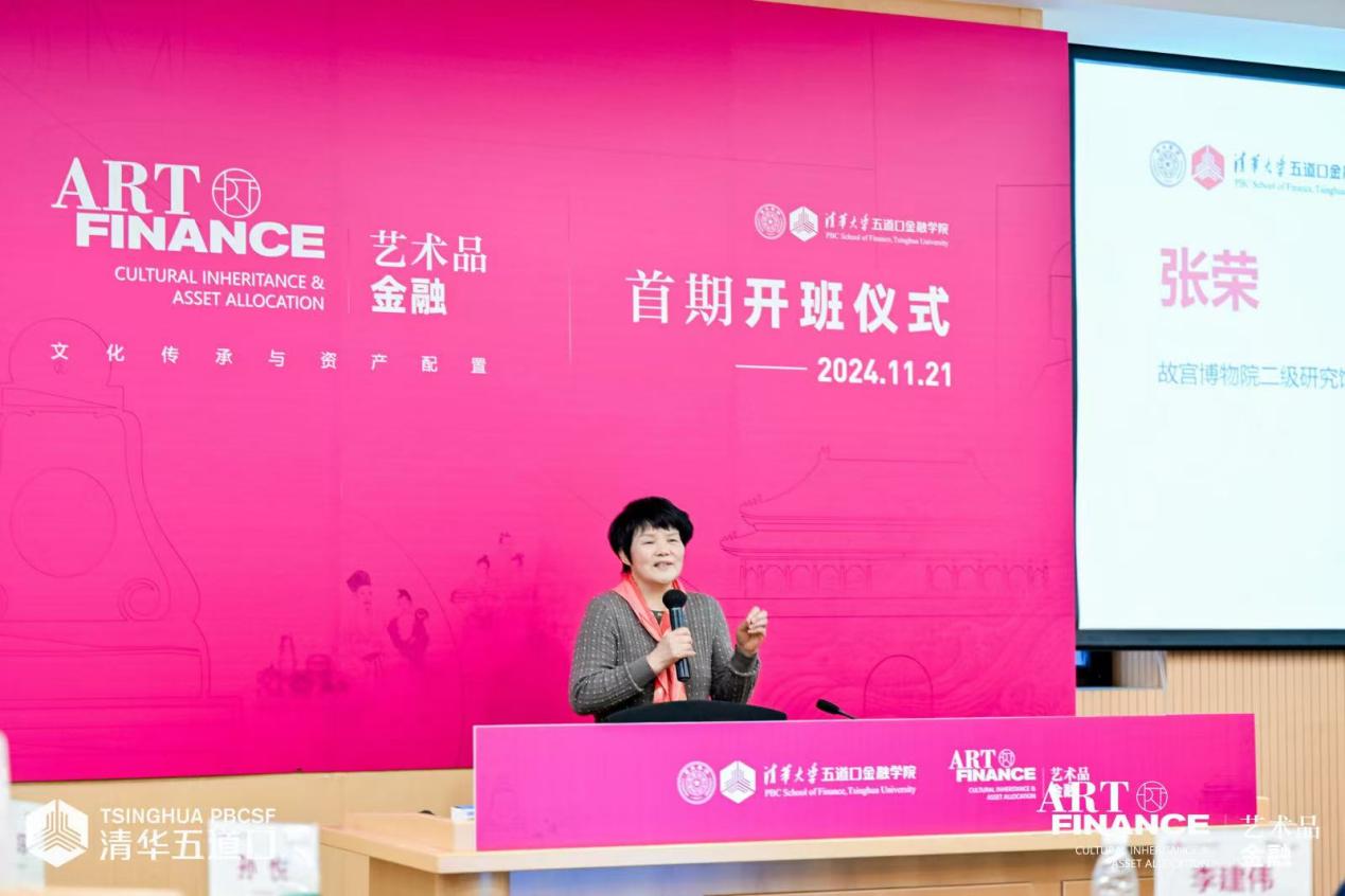 张荣在开班仪式上强调了故宫博物院的深厚资源与人才优势。她指出,故宫博物院不仅是中国最大的古代文化艺术博物馆,也是艺术品研究与教学的重要基地。她特别期待通过这一项目实现教学相长,培养出能够在艺术品金融领域内发挥跨学科能力的人才。