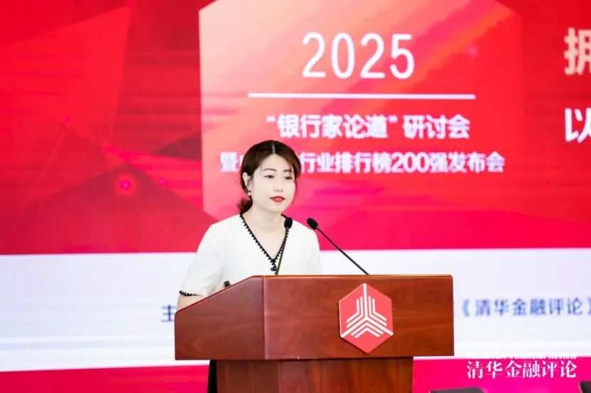北京清控金媒金融评论事业部副总经理、研发部总监秦婷发布“2025中国银行业排行榜200强”榜单。
