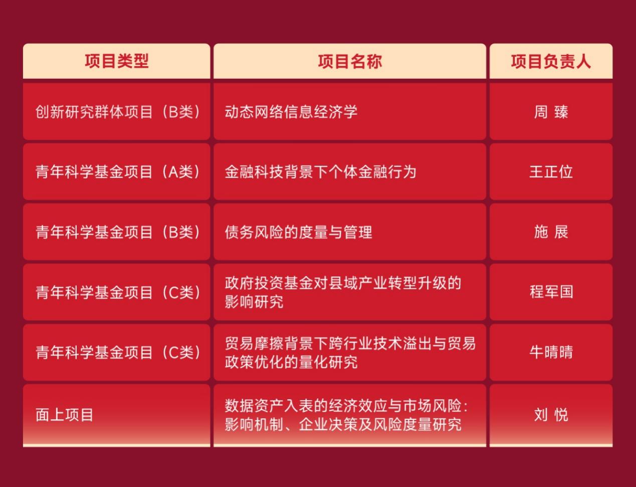 教师聚焦经济金融学科前沿,围绕国家经济建设与社会发展重大需求,积极申报国家自然科学基金,喜获6项国家自然科学基金项目资助。
