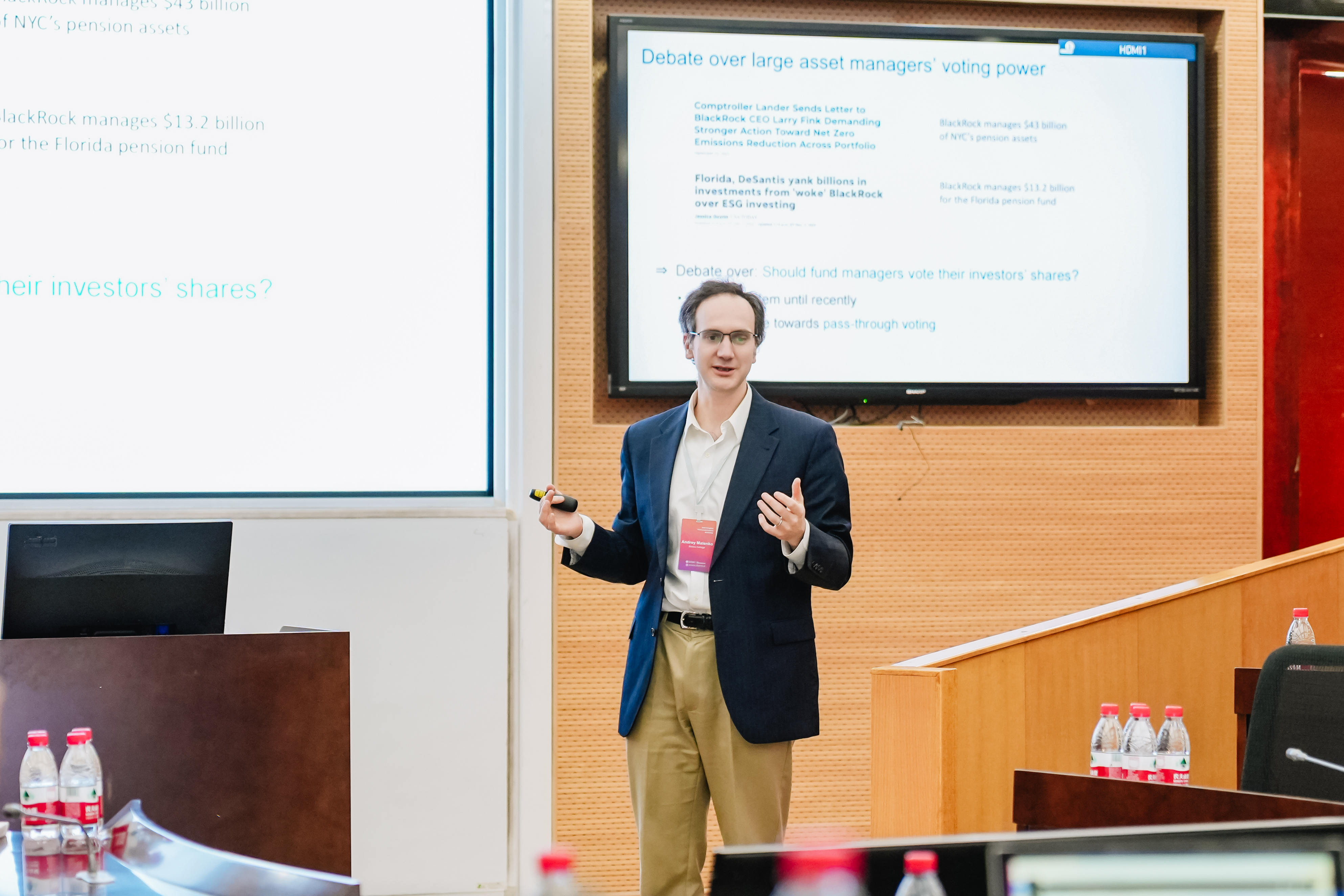赛德纳金融系教授Andrey Malenko发表题为“Voting Choice”的主旨演讲,探讨基金投资者与基金经理关于公司治理的委托代理问题。传统上,基金经理代表基金投资者进行投票。然而,随着基金经理投票权力的集中以及投资人对涉及环境等议题的分歧加深,这一传统受到了激烈讨论。大型基金经理在实践中开始为其投资者提供了一个选择:将投票权委托给基金或自行投票(即“投票选择”)。研究发现,如果提供投票选择的原因是投资者有不同的偏好,那么投资者可能会过度保留他们的投票权,从而低效地优先考虑他们的私人偏好,这可能导致总体上的投资者福利下降。相反,如果提供投票选择的原因是投资者拥有基金经理没有的信息,那么给予投资者投票权委托的选项通常是有效的,可以增加投资者福利。然而,如果信息收集成本高昂,投票选择可能导致协调失败问题,从而得出信息较少的投票结果。