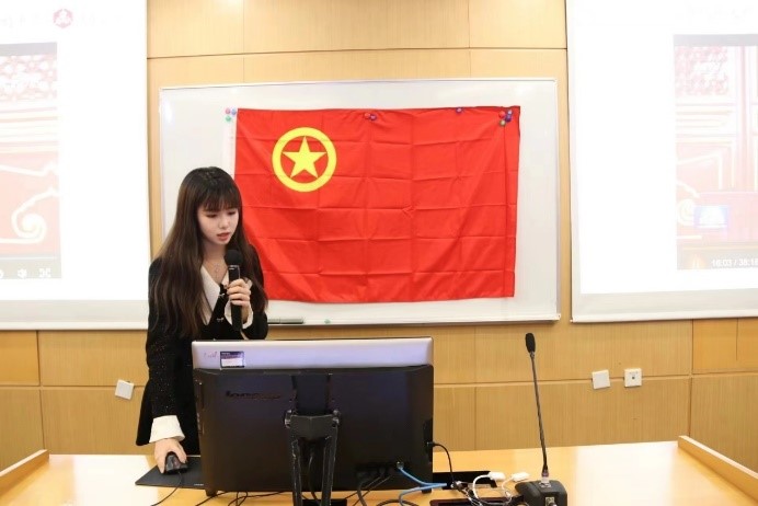 图为付宇彤主持金硕212团支部会议