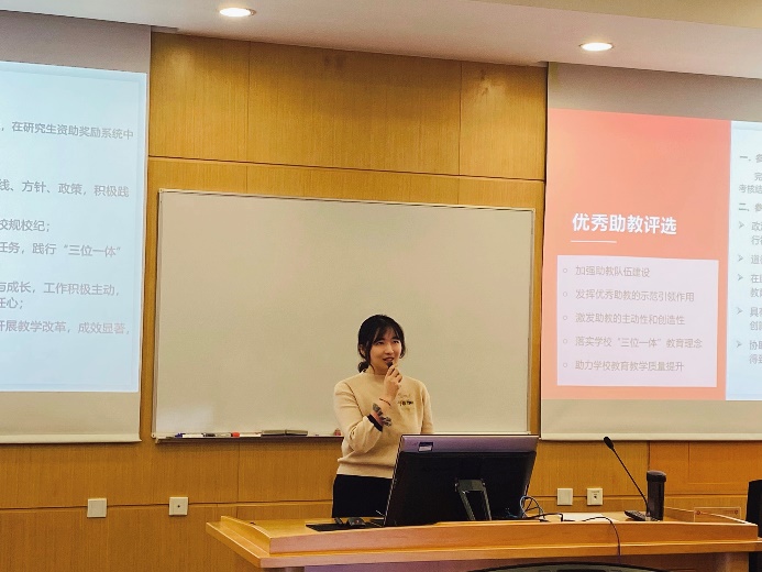 “前几个学期,我日常最多处理的事项,便是同学们因为疫情防控的种种原因需临时请假,以及课堂临时从线下转为线上等等。此时,助教是否及时传达了信息、是否做好了沟通协调,成为课堂平稳开展的关键。”对助教工作重要性的领悟,让王宇桐心中始终有沉甸甸的责任感。“课上无小事,助教不简单,要一点一滴都关心,做好课程的‘凝合剂’。”知责于心、明晰定位,是做好助教工作的起点,也是归属感累积的起点。