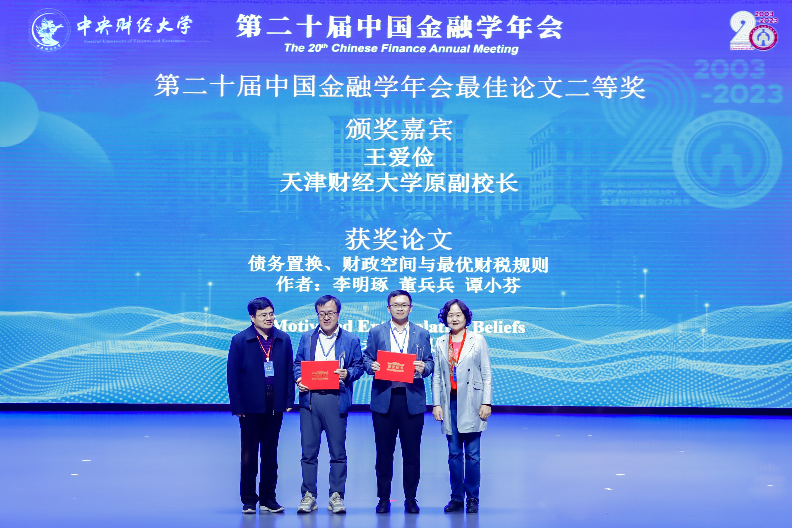 图为杨思远(右二)获得中国金融学术年会最佳论文二等奖
