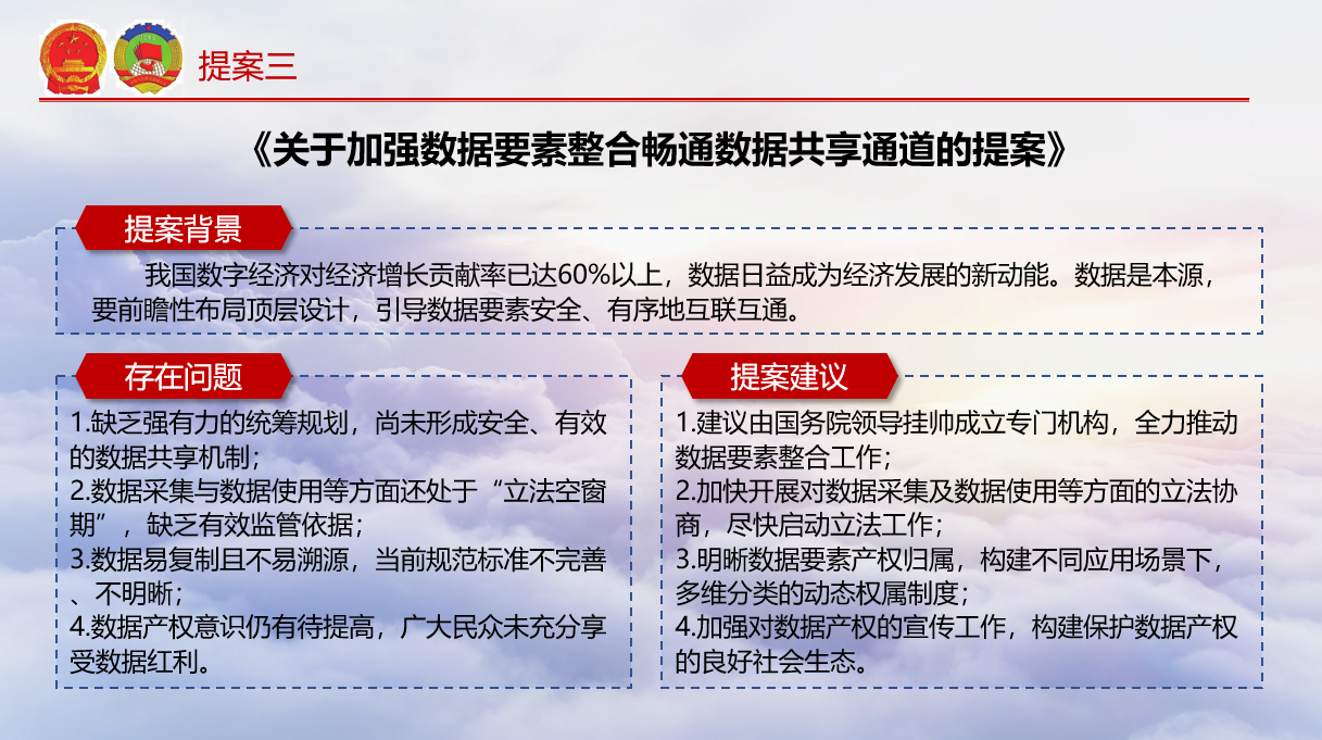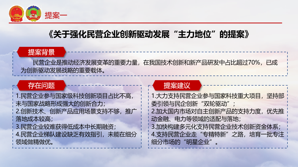 江浩然提出了三个重点提案,他关注民营企业创新驱动发展问题、信创产品落地问题和加强数据共享平台问题。
