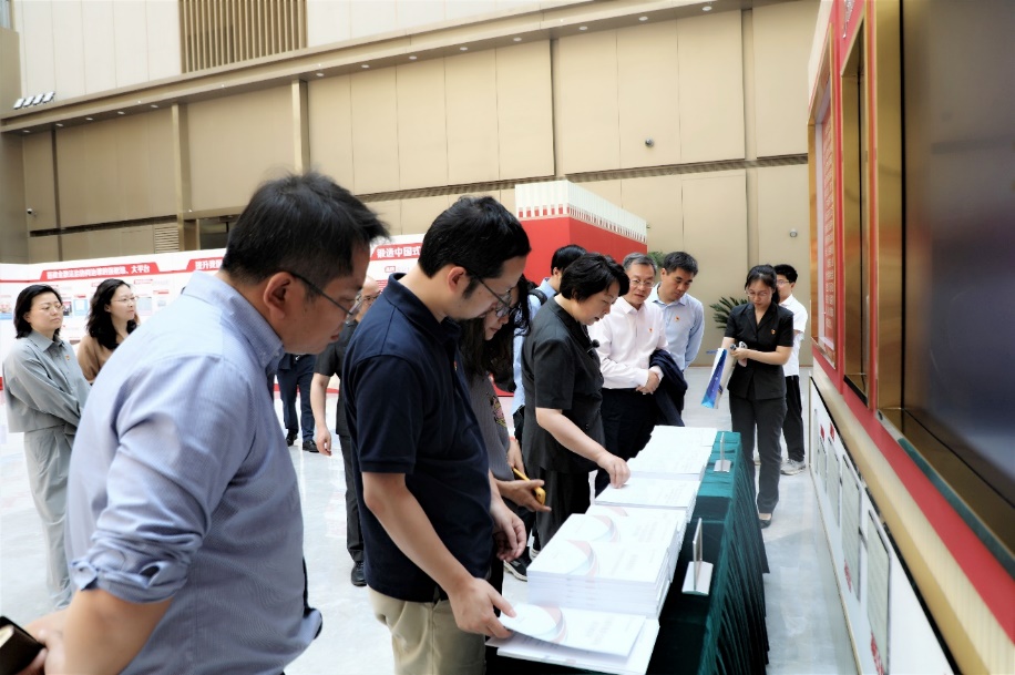观看“以高质量金融司法服务金融高质量发展”主题成果展,了解金融法院办理的易安财险案、乐视网案、獐子岛案等经典案例和双轨双平台、损失核算、庭审百问等工作机制,对金融司法的建设成果有了直观的感受。走进数字融合法庭,“沉浸式”感受金融法庭的威严庄重。