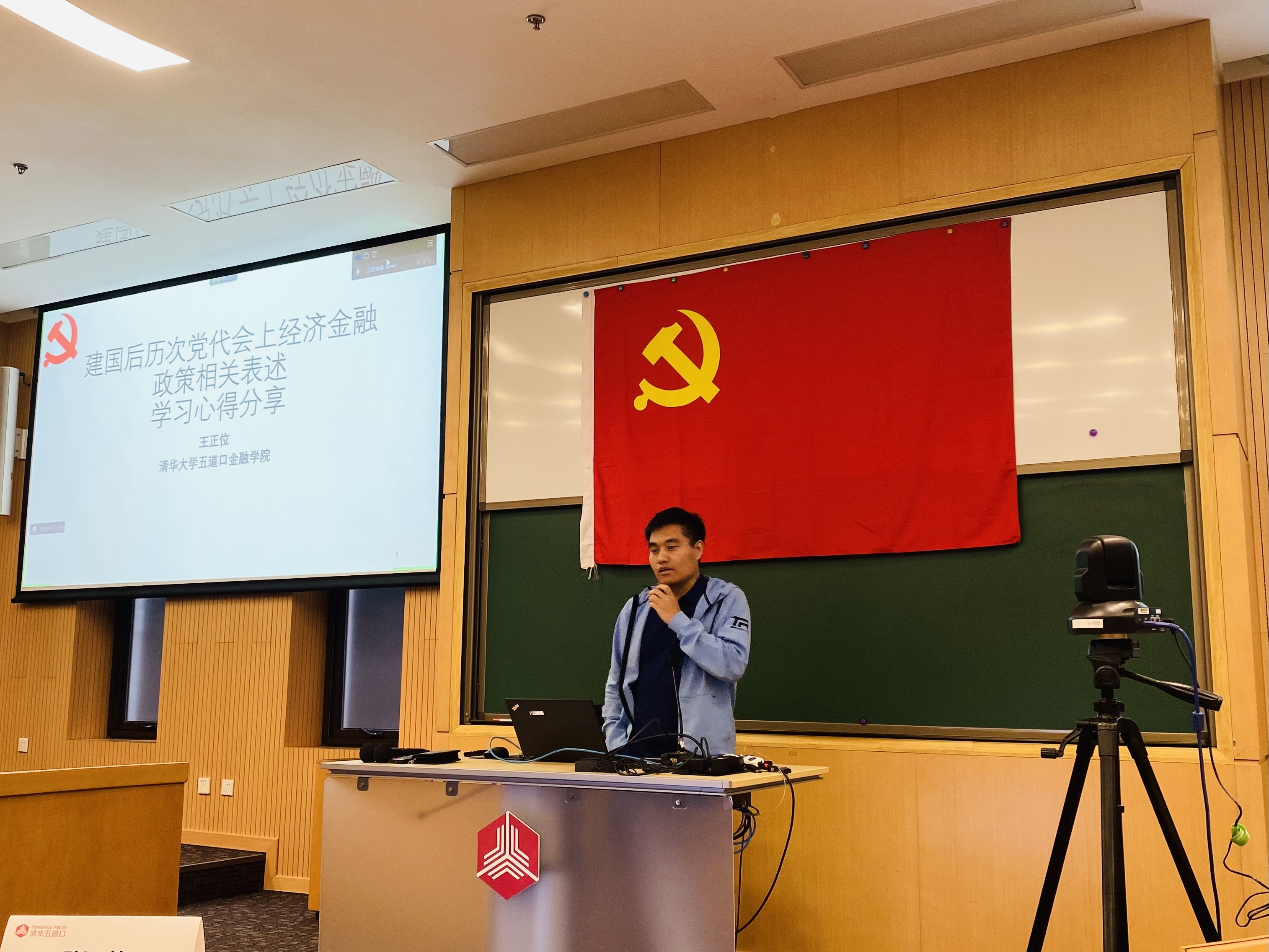 党委副书记、副院长,教职工第三党支部书记王正位分享了有关历次党代会提出的金融政策。王正位详细回顾了从中共八大到十八大历次大会中关于经济部分的主要内容,并为同学们进行了系统性的归纳整理,帮助同学们了解政策实施的背景、理解政策实施的必要性,提高了同学们对于我国经济政策变迁的把握,提升了同学们对于社会主义市场经济的认识。