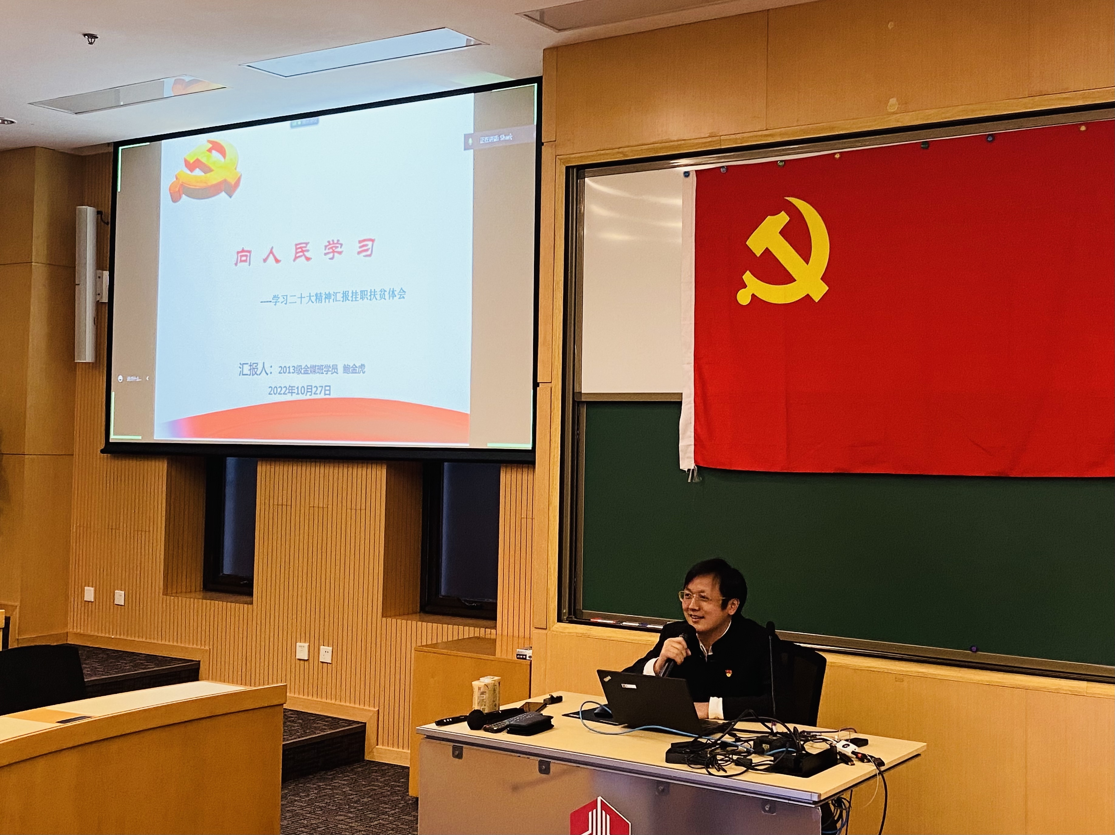 师生党支部积极响应校党委组织部、党委研究生工作部号召,于10月27日下午组织开展了“喜庆二十大,力践新发展”师生联合主题党团日活动,活动围绕党的二十大报告内容和讲话精神,引导师生深刻领会习近平新时代中国特色社会主义思想的丰富内涵,喜迎二十大召开,为践行新发展理念做出贡献。此次活动由金博22党支部党支书石家豪主持。