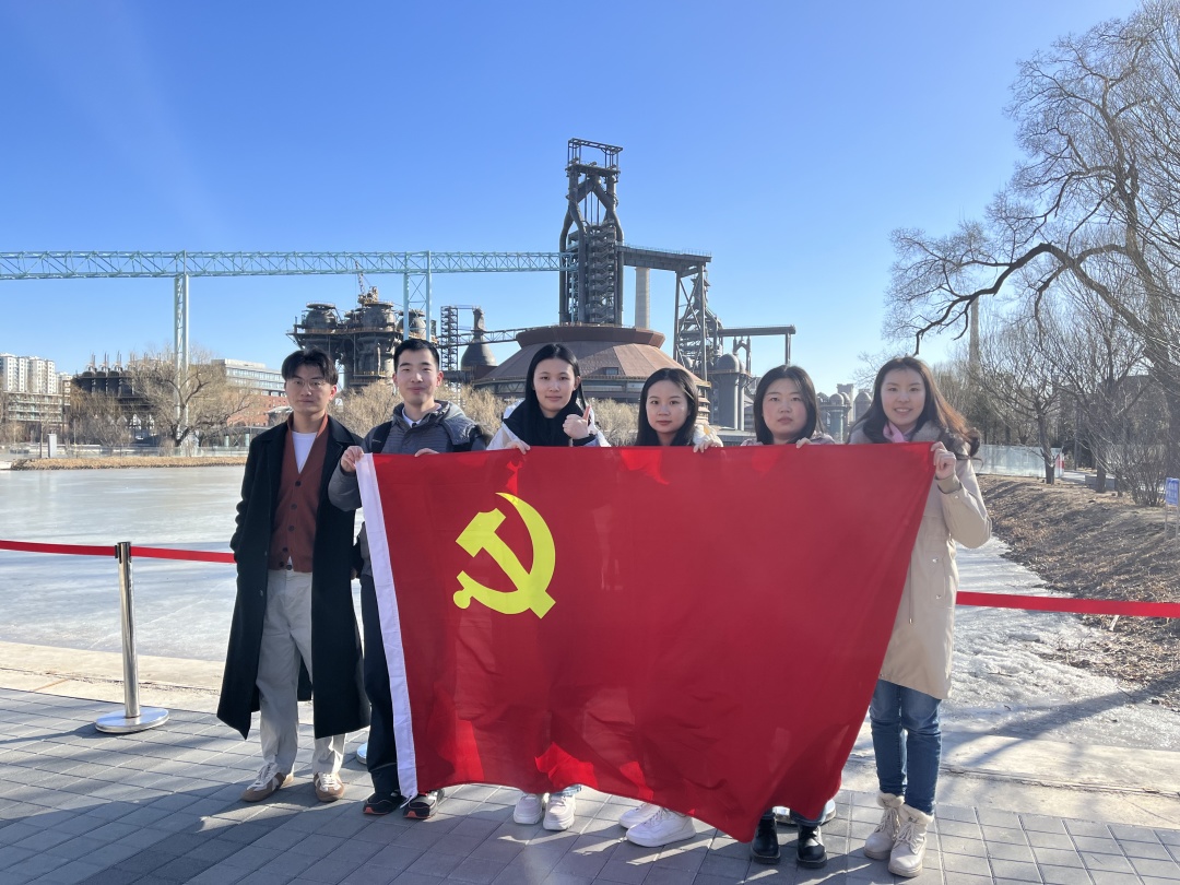 如果说企业参访促使实践支队的同学们精进专业知识;参观红色景点、分享实践感悟的党建活动则提供了将所学所思和家国情怀结合起来的机会。实践支队前往首钢园和校内红色基地分别进行参观学习,此后又与金硕221、金硕222党班团共建交流实践感悟。