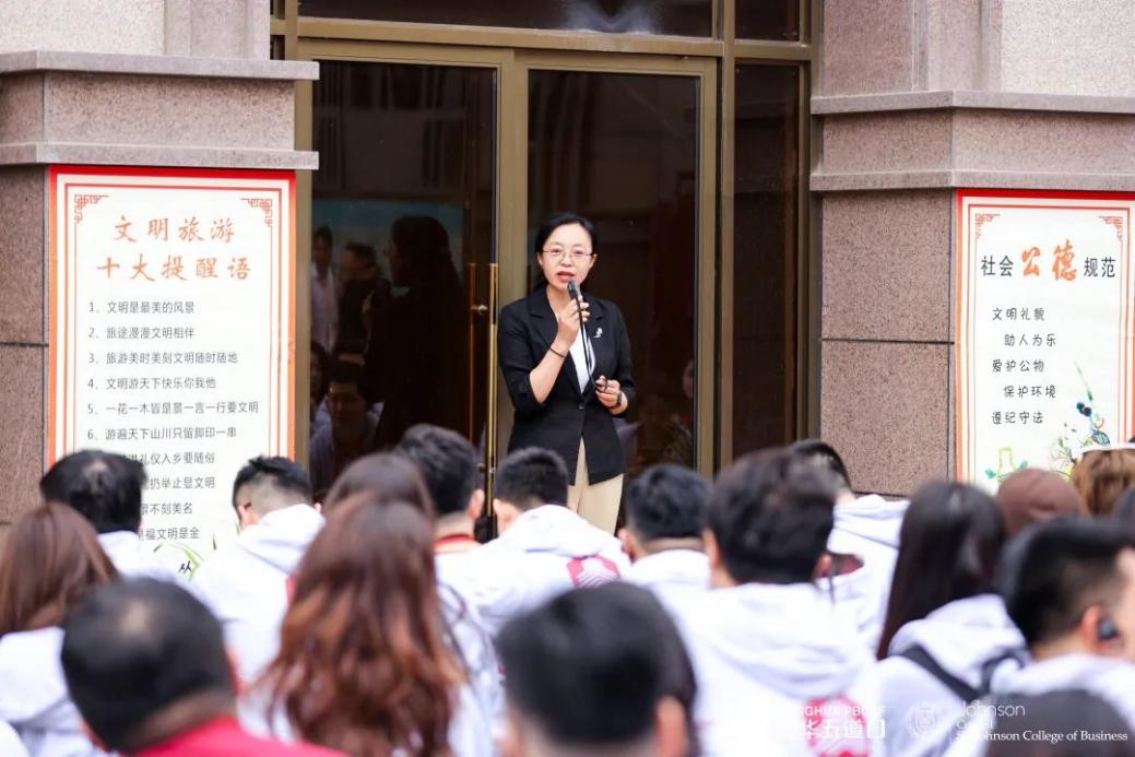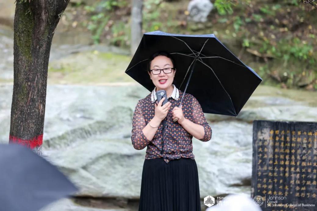 副院长、金融MBA教育中心主任田轩与同学们一同在雨中聆听来自中国延安干部8bo比分