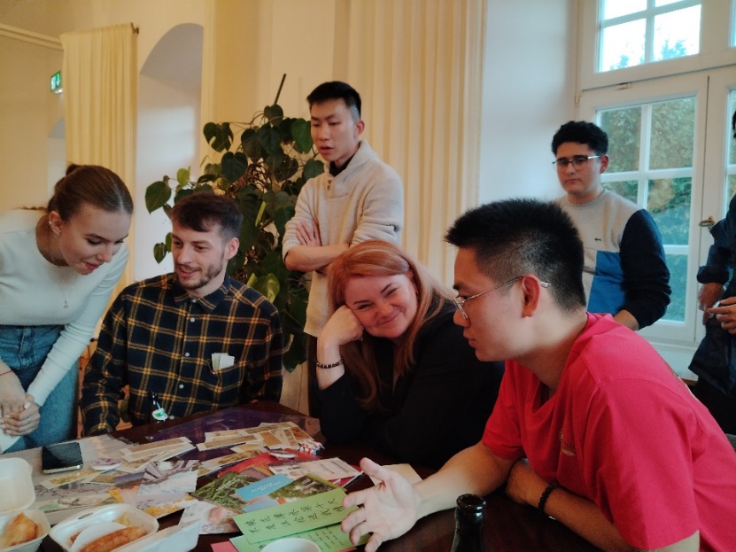 图为师生在文化之夜上交流