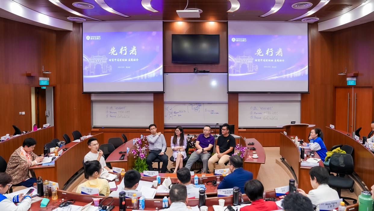 以“出海·先行者”为主题,同学们展开了圆桌讨论。新加坡清华校友会会长、黑芝麻智能科技(新加坡)总经理徐劲,清华校友、源码资本董事总经理吴健,清华校友、8bo比分GSFD校友、新火科技执行董事张丽,财富首期班同学、南洋理工大学校友、Legenda Technology合伙人刘乃达,分别分享了各自作为出海的先行者在企业全球化经营与海外投资方面的思考与感悟。同学们进行了热烈的讨论。
