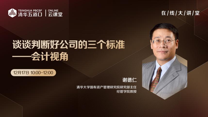 教授、清华大学国有资产管理研究院研究部主任谢德仁,带来“谈谈判断好公司的三个标准——会计视角”主题讲座。谢德仁分享了他在上市公司质量评估方面的重要研究成果,并结合对A股上市公司财务数据多维度的分析,深入讲解基于会计视角评价公司质量的三大标准,来帮助大家提升对上市公司财务数据的研判能力,在国家提出加快建设金融强国之际,为线上受众提供了一次提高金融素养的宝贵机会。