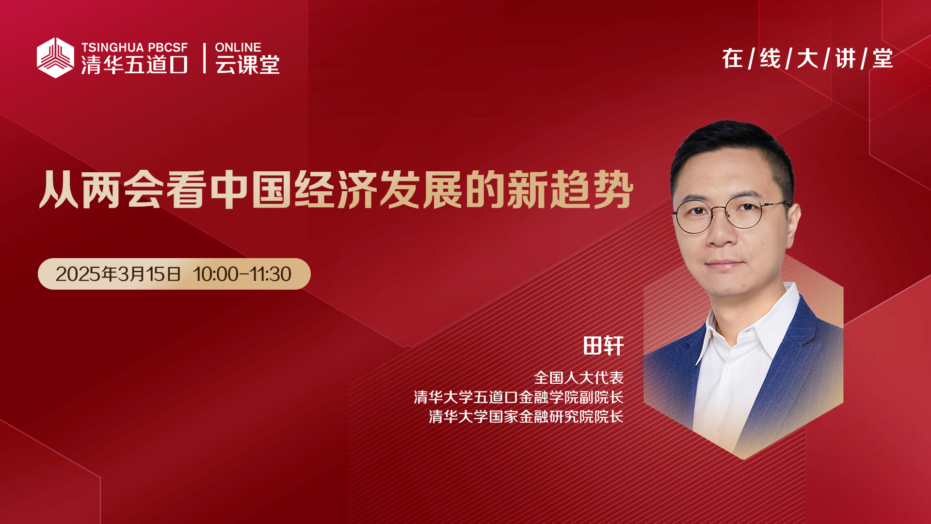 副院长、清华大学国家金融研究院院长田轩,围绕“从两会看中国经济发展的新趋势”主题作分享。田轩教授在讲座中回顾了2024年我国的经济发展主要成就,聚焦2025年政府工作报告中的主要经济发展指标和经济工作的重点部署进行立体化解读,并结合其参与全国两会的切身感受,分享他的观察和思考。