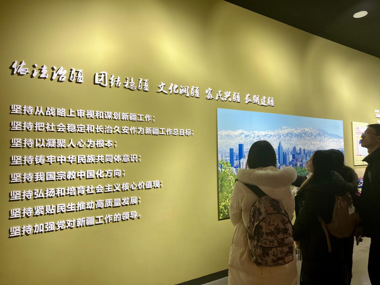 党的十八大以来,在以习近平同志为核心的党中央坚强领导下,新疆各族儿女凝心聚力、团结进取,聚焦新时代党的治疆方略,坚持把民族团结作为新疆发展进步的基石、作为新疆最大的群众工作和最长远的工作,以铸牢中华民族共同体意识为主线,促进各民族像石榴籽一样紧紧抱在一起。支队成员循着总书记的足迹,探寻各族人民团结奋斗的光辉岁月,深化中华儿女是一家的内心认同。