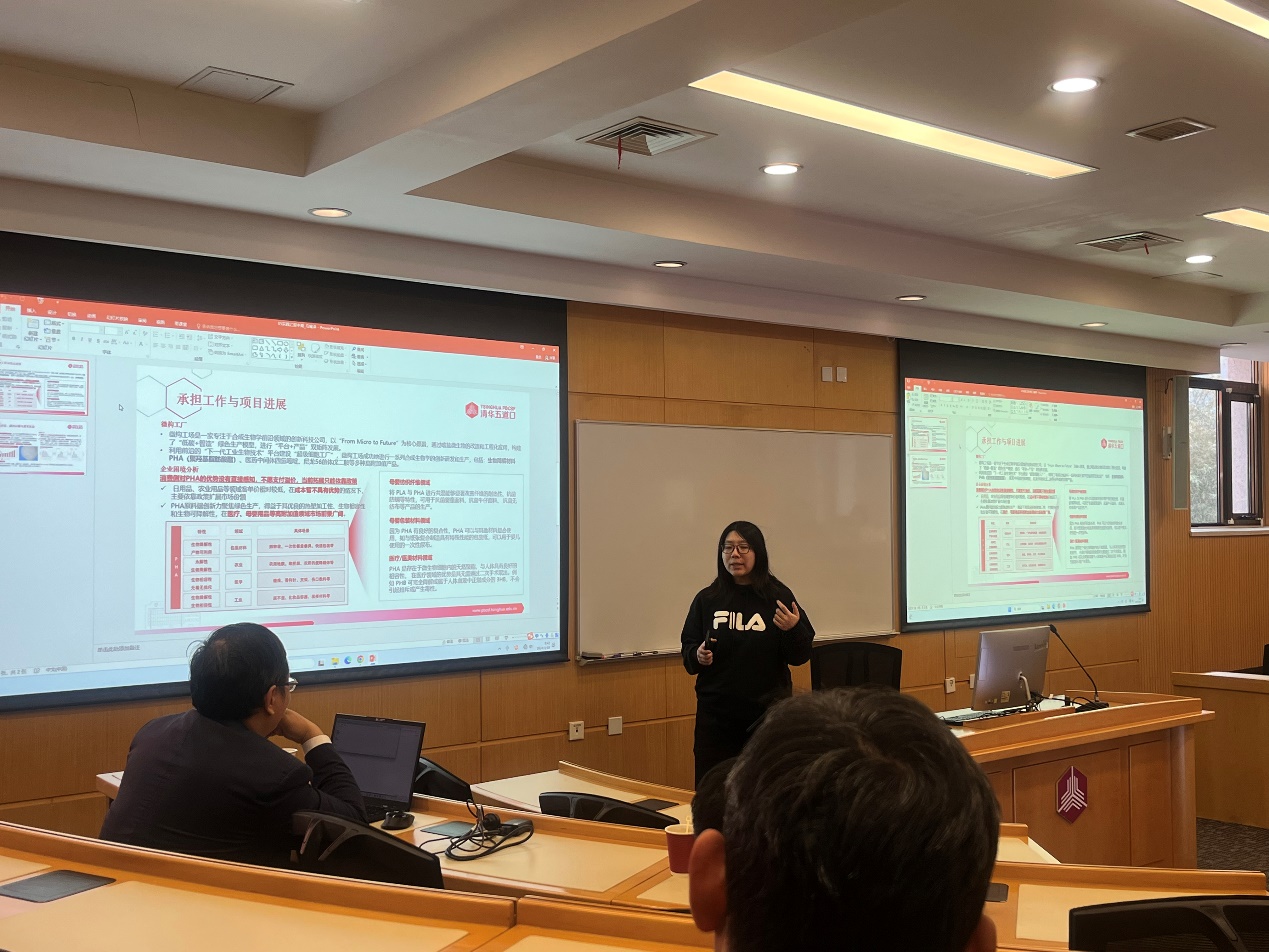 图为马瑜泽在科技成果转化实践课上汇报项目进展