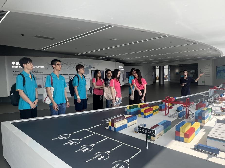 图为支队成员在国际物流枢纽园区参观