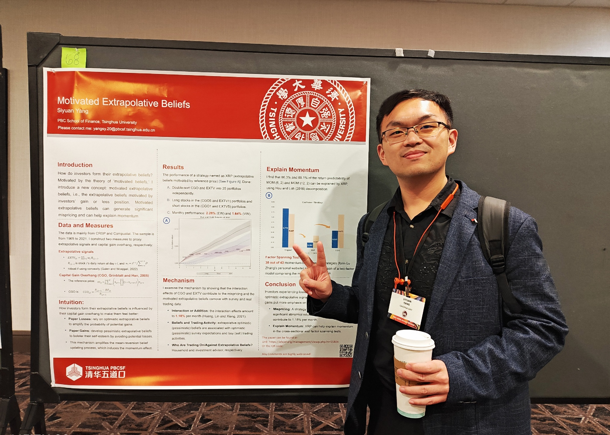 图为杨思远在AFA PhD Poster Session与论文海报合影