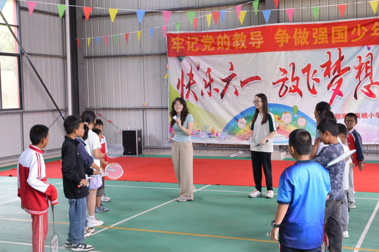 随后的体育环节更是将欢乐推向高潮:在羽毛球活动“羽你同行”中,球拍与羽毛球交错腾空,孩子们奔跑、跳跃,操场上洋溢着不间断的笑声。