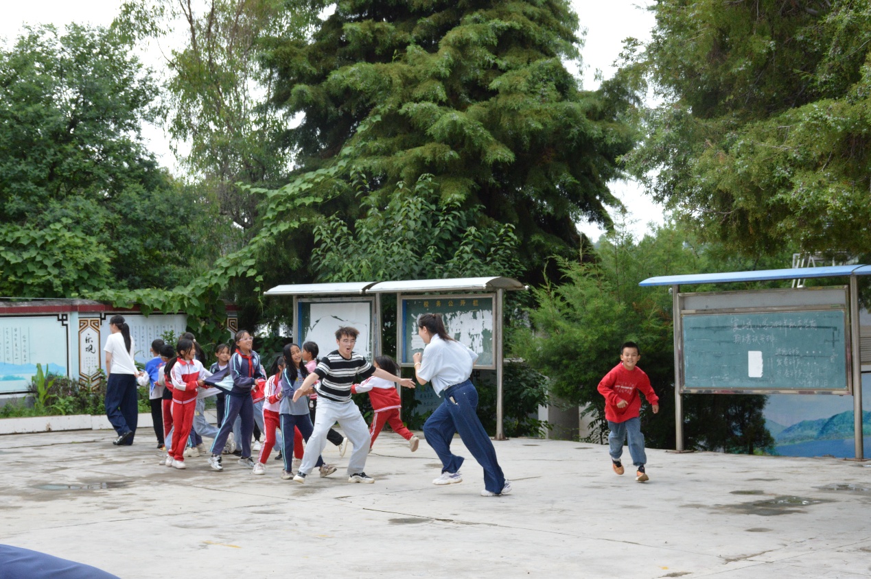 图为支队成员和孩子们初识
