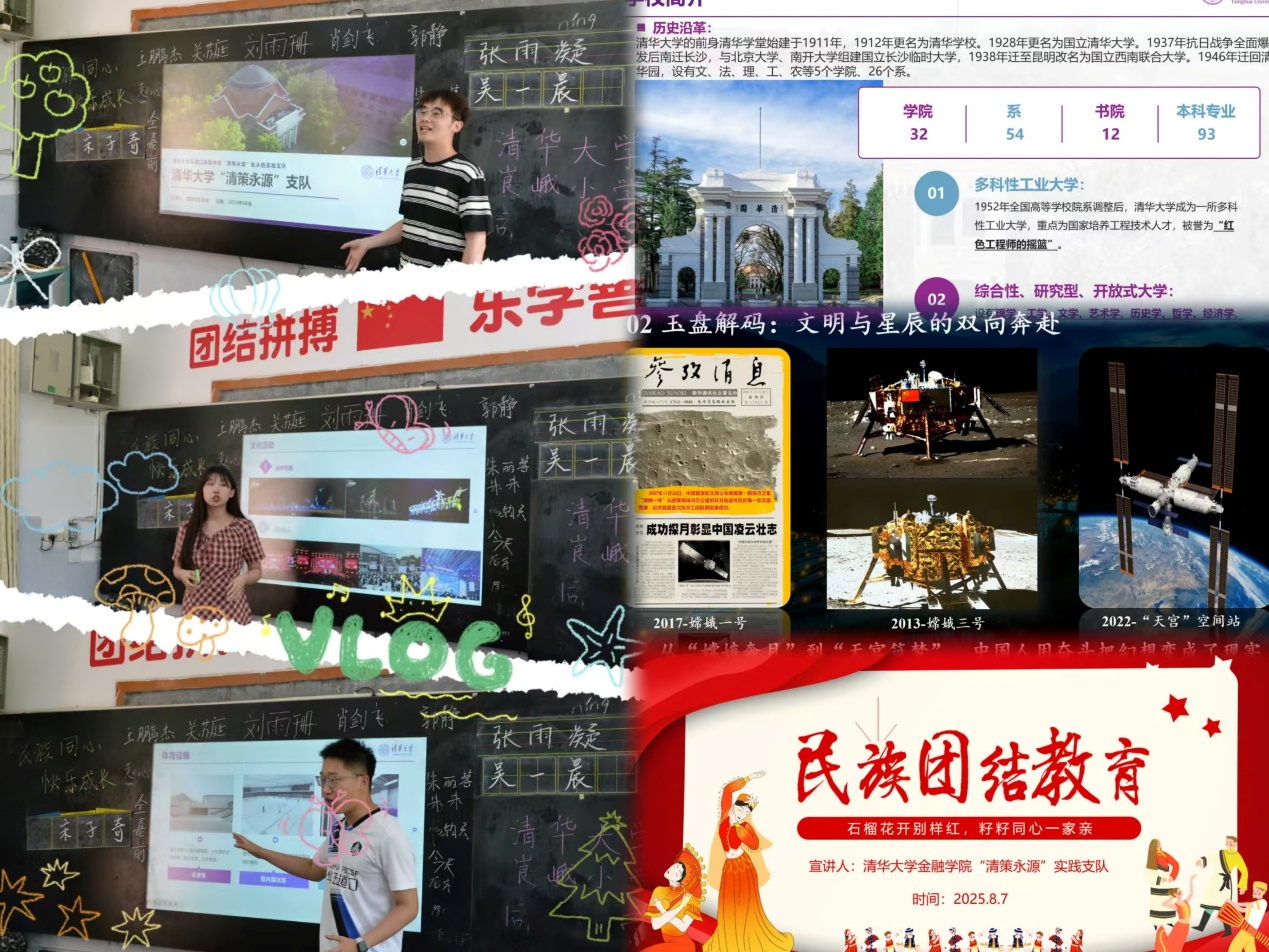 肖剑飞、赵心怡、宋子奇带孩子们走进清华——建校的故事、发展历程、杰出人物、丰富多彩的校园活动。他们说:“清华大学不只是一个名字,而是一个象征——象征着努力、希望和无限可能。”孩子们听得专注,眼神闪烁,仿佛在心里埋下了一颗名为“梦想”的种子。