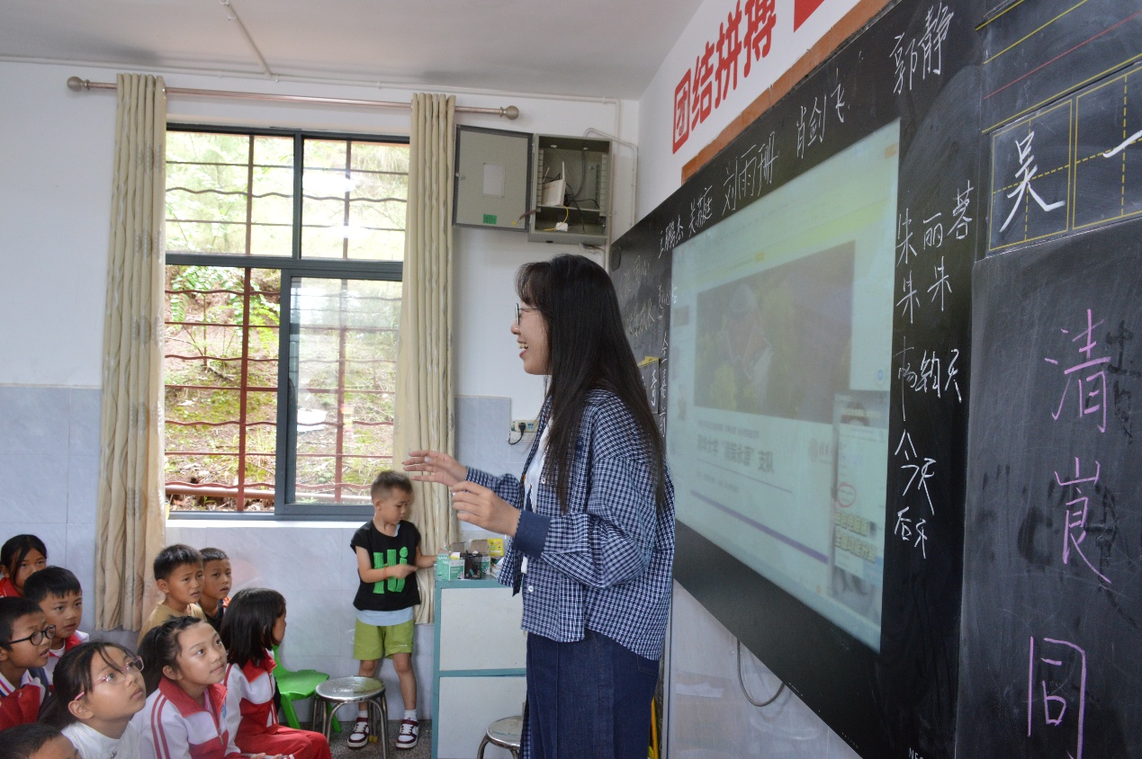 教室里的气氛在破冰环节渐渐升温。支队成员依次走上讲台,向弟弟妹妹们介绍自己的姓名、年级、家乡、名字的由来和个人爱好。我们也忍不住表达了满满的感激——感谢孩子们的热情欢迎,也感谢能有机会与他们共度这样一个午后。