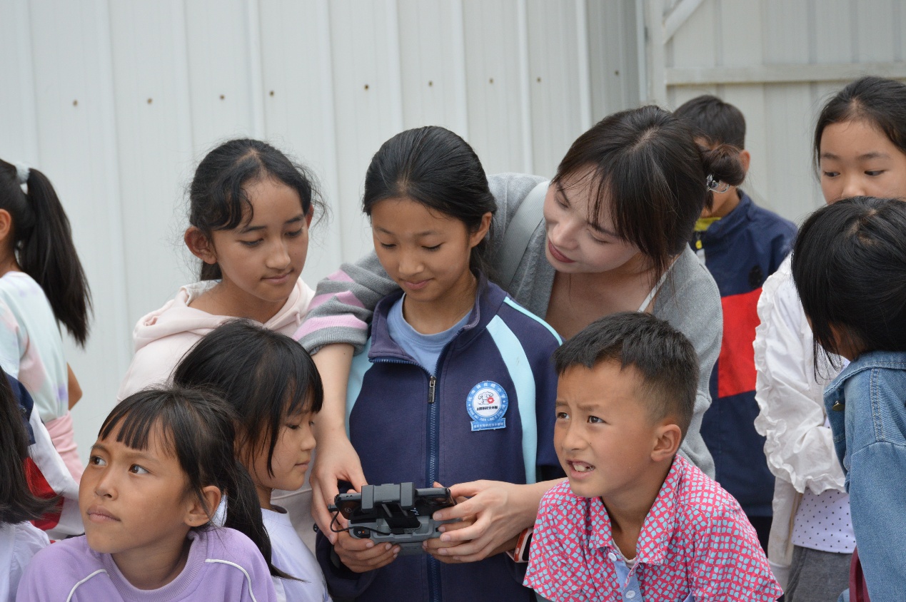 图为教孩子们操作无人机